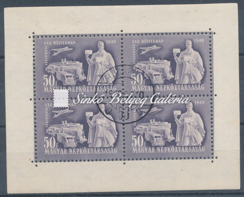 | Leírás | 1949. Alkotmány (I.) Ívsarki 4-es tömb sor XI. vízjellel! / 1949. Constitution (I.) Block of 4 set from the corner of the sheet with XI. watermark! |
