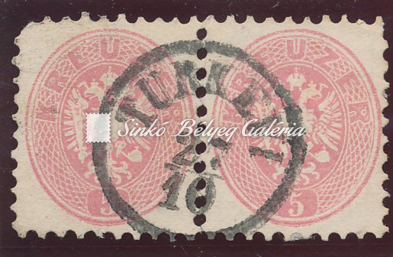 | Leírás | 2x5kr bélyeg TURKEVI lebélyegzéssel. 60 Gp / 2x5kr stamps with TURKEVI cancellation. 60 Gp |