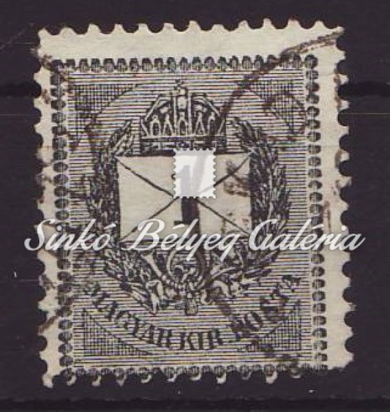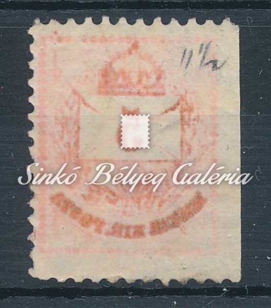 | Leírás | 1kr. 11 1/2-es fogazattal és B 4-es vízjelállással. Az értékszámot külön nyomták. / With 11 1/2 perforation and B 4 position of watermark. The value number is pressed separately. |