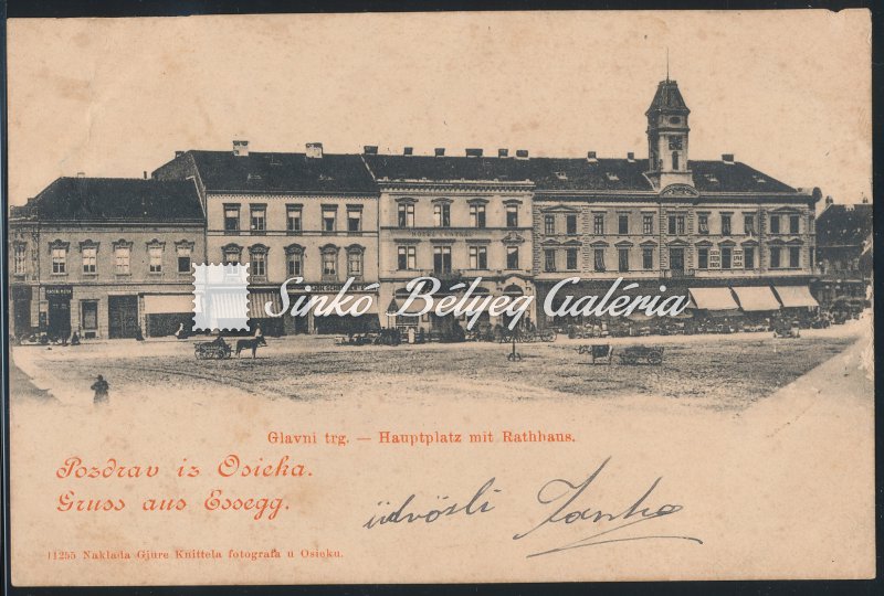 Üdvözlet Eszékből. Fő-tér a Városházával.