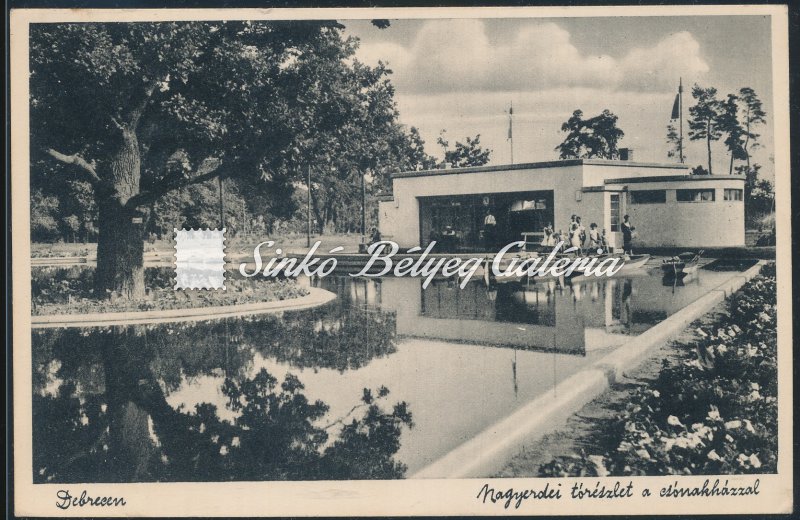 Debrecen. Nagyerdei tórészlet a csónakházzal.
