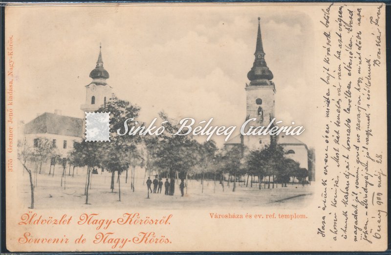 Üdvözlet Nagy-Kőrösről. Városháza és ev. ref. templom.