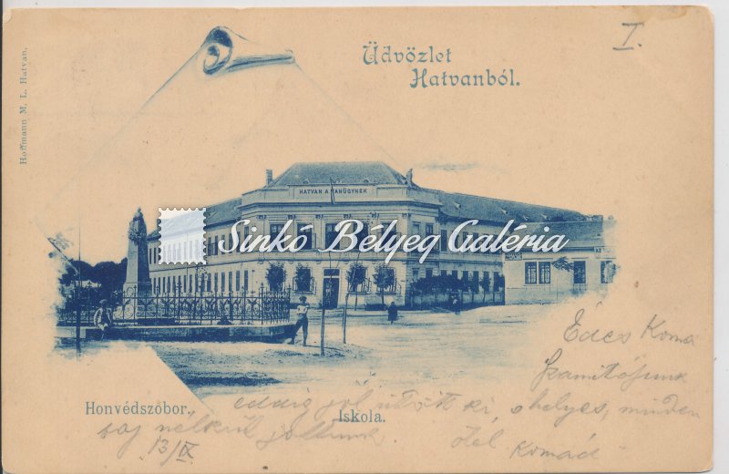 Üdvözlet Hatvanból. Honvészobor. Iskola.