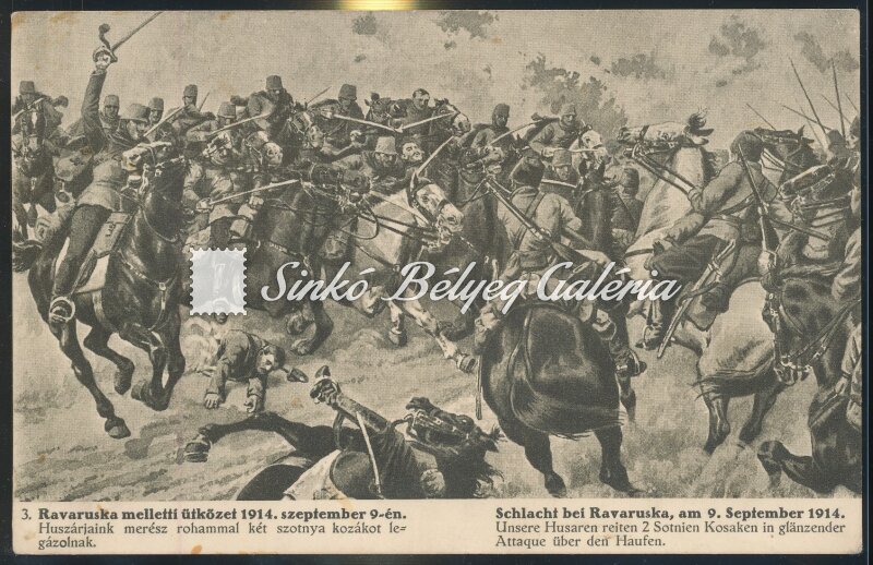 Ravaruska melletti ütközet 1914. szeptember 9-én. Huszárjaink merész rohammal két szotnya kozákot legázolnak.
