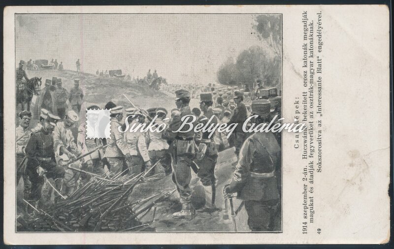 Csataképek: 1914 szeptember 2-án. Huczwánál bekerített orosz katonák megadják magukat és átadják fegyverüket az oszták-magyar katonáknak.