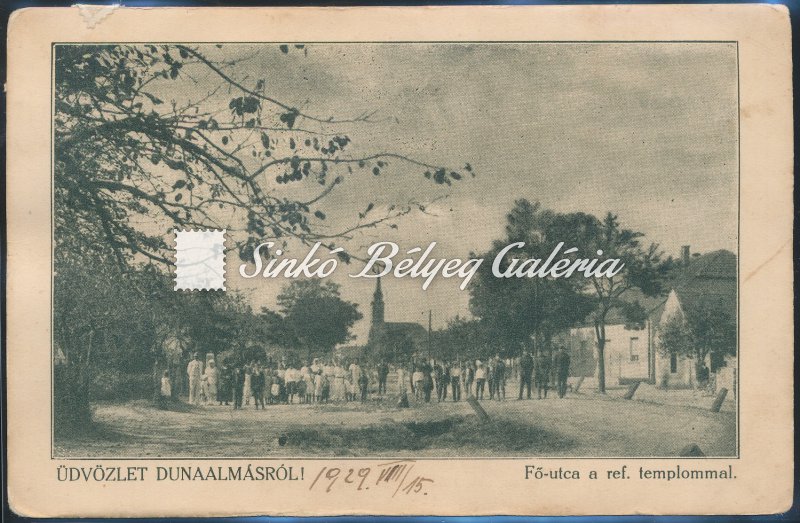 Üdvözlet Dunaalmásról! Fő-utca a ref. templommal.