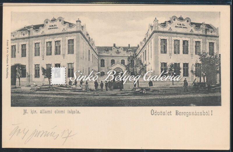 Üdvözlet Beregszászból! M. kir. állami elemi iskola.