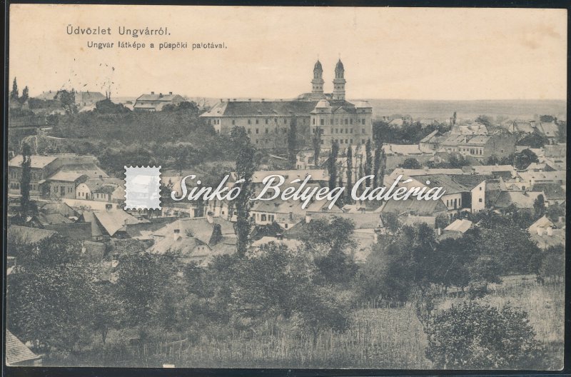 Üdvözlet Ungvárról. Ungvár látképe a püspöki palotával.
