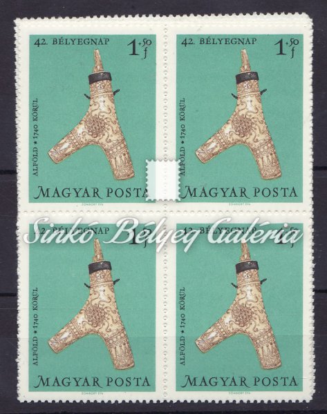 | Leírás | 4-es tömb, ívszéli sor. / Block of four, set from the margin of the sheet. Katalógus érték / Catalogue value: 6 000 HUF |