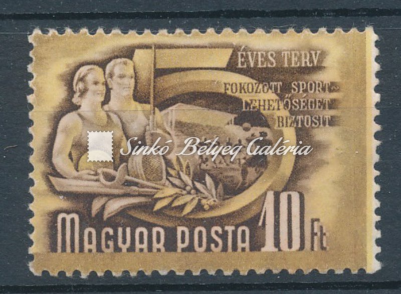 | Leírás | 1958. Sport (III.) - tévnyomat 20f bélyegpáron, az értékjelzés "f" betűjén fehér folt van. / 1958. Sport (III.) - misprint On 20f stamp pair, there is a white spot on the letter "f" of the denomination. |
