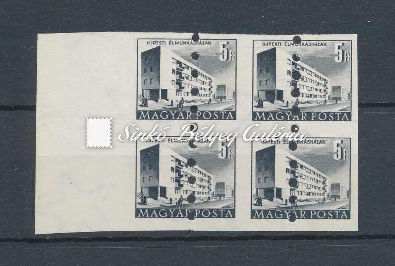| Leírás | Négyes tömbben, elfogazással, tévnyomat./ In block of four, misprint with defective perforation. |
