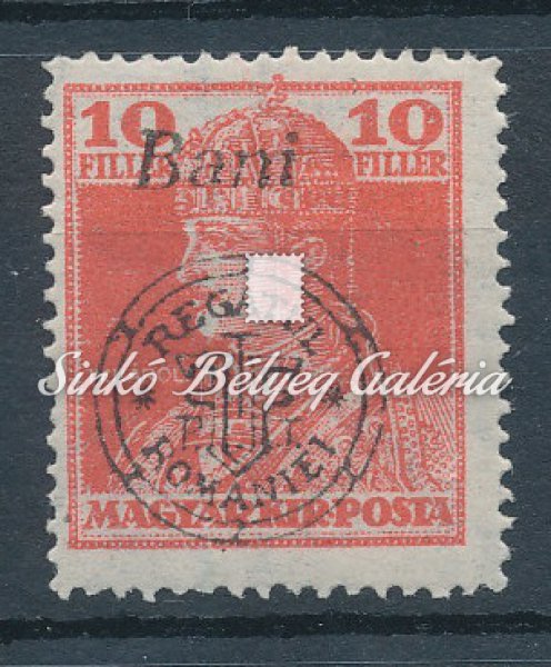 | Leírás | 1919. Debrecen (II.) (Román megszállás) Fogazott, 15f. felülnyomat nélküli próbanyomat. Bodor M. bélyegszakértő hátoldali bevizsgáló jelével. / 1919. Debrecen (II.) (Romanian occupation) Perforated 15f. proof print without overprint. With the stamp expert, M. Bodor's test sign on the back side. |