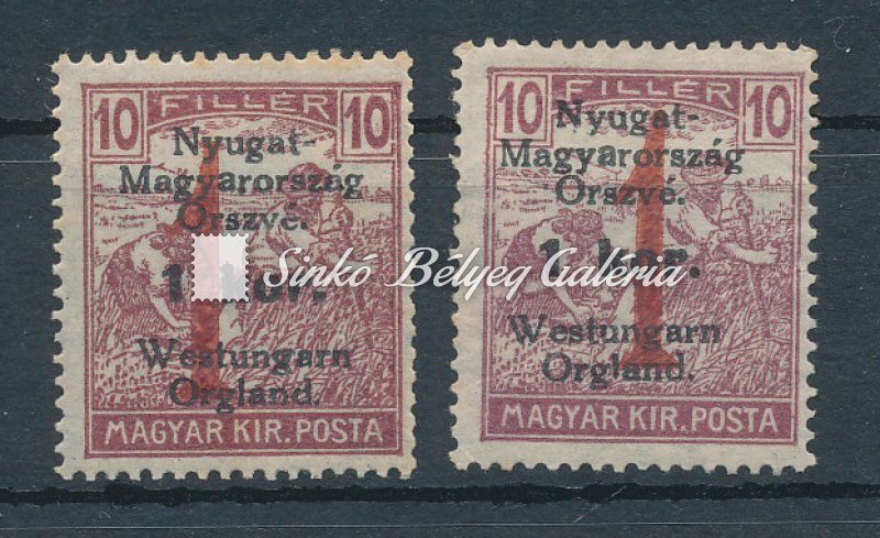 | Leírás | 1919. Baranya (I.) (Szerb megszállás) 50f Turul bélyeg 9-es tömbben, melyen az 1919 évszám második 1 száma vékonyabb és rövidebb. Bodor M. bélyegszakértő hátoldali bevizsgáló jelével. / 1919. Baranya (I.) (Serbian occupation) 50f Turul stamp in a block of 9, on which the second number 1 of the year 1919 is thinner and shorter. With the stamp expert, M. Bodor's proof sign on the back side. |