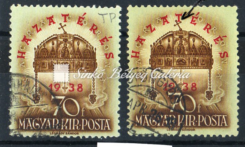 | Leírás | 1940. Kelet visszatér - tévnyomat 2db "Keletu" vésett javított bélyeg, az egyik pont nélküli. / 1940. East returns - misprint 2 pieces of engraving repaired stamps, one of them is without dot. |