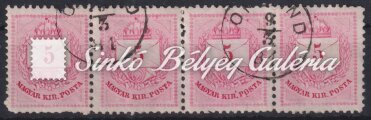 Leírás | 1874. Színesszámú krajcáros 5kr bélyeg 4-es csíkban, 11 1/2 fogazattal, OKLÁND (RO) lebélyegzéssel! A bal oldali első bélyeg 3 oldalán 11 1/2 fogazatú de a bal oldalán 13-as fogazatú! R! / 1874. Colour number krajcar 5kr stamp in a stripe of 4, with 11 1/2 perforation and OKLAND (RO) cancellation! The first stamp on the left has 11 1/2 perforation on 3 sides, but has 13 perforation on the left side! R! |