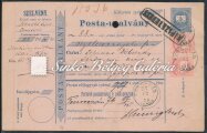 Leírás | 1876.12.27. 5kr Posta-utalvány TEMESVÁR/Város-BUDAPEST között. 2x5kr vízjel nélküli bélyegkiegészítéssel bérmentesítve! / 1876.12.27. 5kr Postal voucher between TEMESVAR/Varos-BUDAPEST. Supplied and franked with 2x5kr stamps without watermark! |