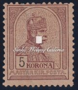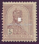 Description | 1900. Turul 5K bélyeg 2-es vízjelállással! / 1900. Turul 5K stamp with 2nd watermark position! |