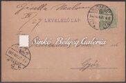 Description | 1902.11.27. Perfin levél BUDAPEST-GYŐR között. 5f Turul bélyeggel bérmentesítve, Gizella Gőzmalom céglyukasztásával! / 1902.11.27. Perfin letter between BUDAPEST-GYOR. Franked with a 5f Turul stamp, with the perfin punching of the Gizella Steam Mill! |