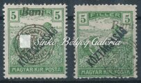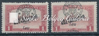 Description | 1919. Nagyváradi felülnyomás (Román megszállás) 1K Köztársaság/Parlament bélyegen eltolódott felülnyomás. Bodor M. bélyegszakértő hátoldali bevizsgáló jelével. / 1919. Nagyvarad overprint (Romanian occupation) Shifted overprint on 1K Republic/Parliament stamp. With the stamp expert, M. Bodor's proof sign on the backside. |