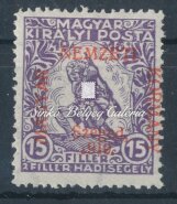 Leírás | 1919. Szeged (Francia megszállás) 15f+2f Hadisegély (III.) bélyegen, a felülnyomat 1919-es évszámának első "1" számjegye hiányos! Bodor M. bélyegszakértő hátoldali bevizsgáló jelével. / 1919. Szeged (French occupation) On 15f/2f Military aid (III.) stamp, the first number "1" of the year 1919 of the overprint, is deficient! With the stamp expert, M. Bodor's proof sign on the backside. |