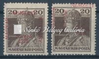 Leírás | 1919. Szeged (Francia megszállás) 20f Károly bélyeg jelentős felülnyomat elcsúszással. Bodor M. bélyegszakértő hátoldali bevizsgáló jelével. / 1919. Szeged (French occupation) 20f Karoly stamp with significantly slipped overprint. With the stamp expert, M. Bodor's proof sign on the backside. |