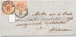 Description | 1853.11.17. Távolsági levél PESTH-KALOCSA között. 2x3kr géppapír III. típusú bélyegekkel bérmentesítve. / 1853.11.17. Long distance letter between PESTH-KALOCSA. Franked with 2x3kr machine made paper type III. stamps. |