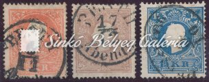 1858. Könyvnyomat dombornyomással 5kr, 10kr, 15kr