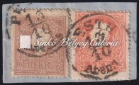 1858. Könyvnyomat dombornyomással 10+5kr, PESTH/ABENDS