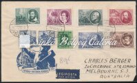 Leírás | 1952.07.28. Légiposta levél BUDAPEST-MELBOURNE (AU) között. 6,50Ft díjtétellel, vegyesen bérmentesítve. / 1952.07.28. Airmail letter between BUDAPEST-MELBOURNE (AU). Mixed franking with 6,50Ft fare. |