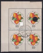 Leírás | 1964. Magyar Barackfajták - tévnyomat 60f bélyeg ívsarki 4-es tömbben lyukas lemezhibás bélyeg! / 1964. Hungarian types of peaches - misprint 60f stamp in a block of 4 from the corner of the sheet, with the holey stamp, plate failure! |