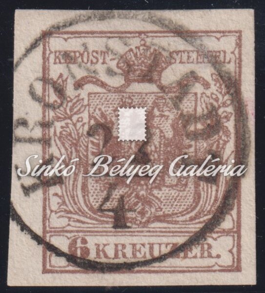 Leírás | 1850. Könyvnyomat 6kr géppapír bélyeg KRONSTADT (RO) lebélyegzéssel! / 1850. Typography 6kr machine-made paper stamp with KRONSTADT (RO) cancellation! |