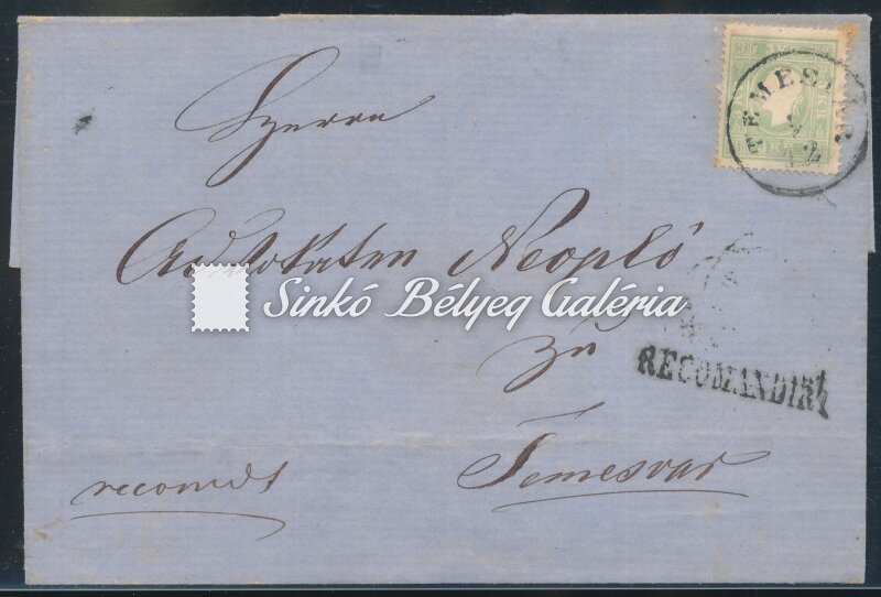 Leírás | 1858. Helyi ajánlott levél TEMESVÁRon. 3kr + hátoldali 5kr bélyegkiegészítéssel bérmentesítve, melyet a felbontáskor elvágtak! (Ferchenbauer 1.250 €) / 1858. Local registered letter in TEMESVAR. Franked with 3kr + supplied with a 5kr stamp on the backside which was cut at the time of opening! (Ferchenbauer 1.250 €) |