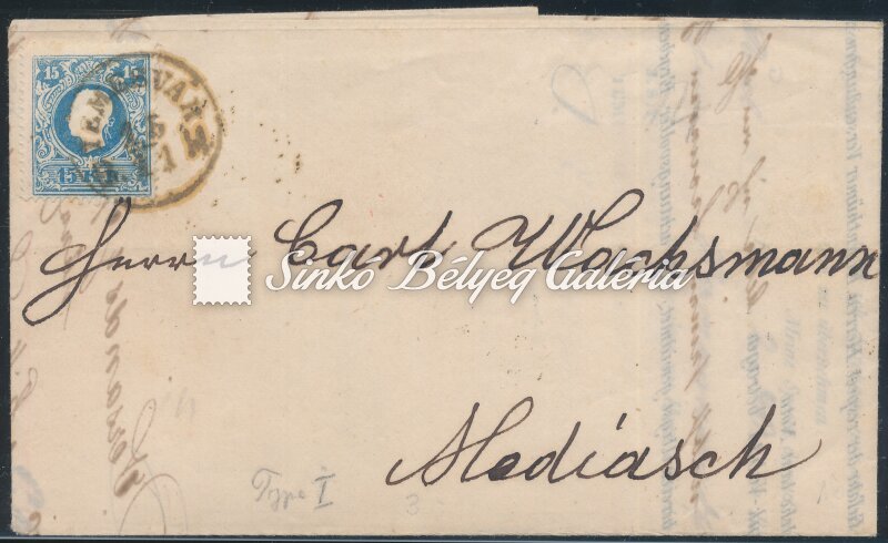 Leírás | 1858.11.15. Távolsági levél TEMESVÁR-MEDIASCH között. 15kr I. típusú bélyeggel bérmentesítve! / 1858.11.15. Long distance letter between TEMESVAR-MEDIASCH. Franked with a 15kr type I. stamp! |
