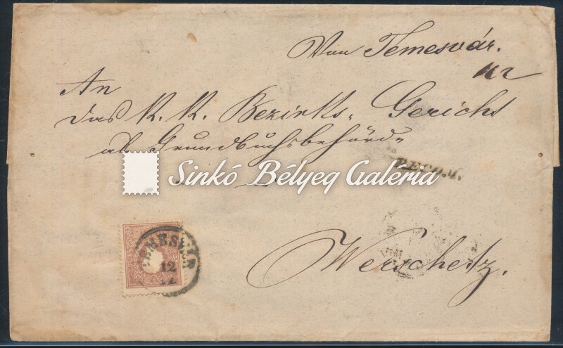 1858.12.12. Ajánlott levél TEMESVÁR-VERSCHETZ
