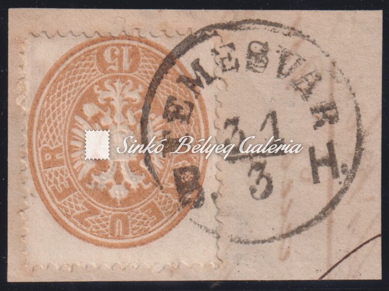 1863. Könyvnyomat dombornyomással 15kr, TEMESVÁR/B.H.