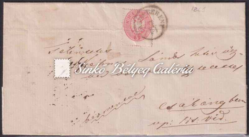 Leírás | 1863.11.07. Távolsági levél DEBRECEN - NEMES-VID között. Egy elfogazott, 14-es fogazatú 5kr bélyeggel bérmentesítve! Teljes levéltartalommal! / 1863.11.07. Long distance letter between DEBRECEN - NEMES-VID. Franked with a 5kr stamp with 14 and defective perforation! With full letter content! |
