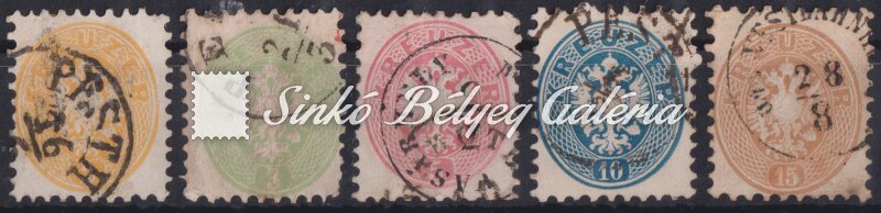 Leírás | 1864. Könyvnyomat dombornyomással Teljes sor magyar bélyegzéssel! / 1864. Typography with embossed printing Complete set with Hungarian cancellations! |