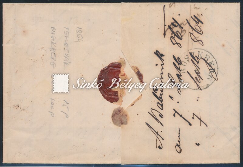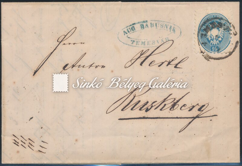 Leírás | 1864.09.07. Távolsági levél TEMESVÁR-RUSZKBERG között. 10kr 9 1/2 fogazatú bélyeggel bérmentesítve! / 1864.09.07. Long distance letter between TEMESVAR-RUSZKBERG. Franked with a 10kr stamp, with 9 1/2 perforation! |