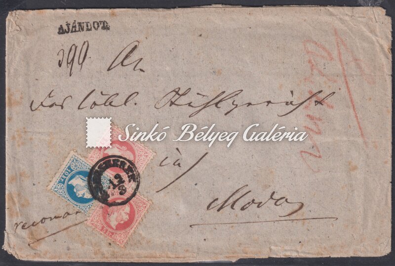 Leírás | 1868.08.19. Ajánlott levél N.BECSKEREK-MÓDOS között. 10kr+2x5kr bélyegekkel lépcsőzetesen bérmentesítve! / 1868.08.19. Registered letter between N.BECSKEREK-MODOS. Gradual franking by 10kr+2x5kr stamps! |