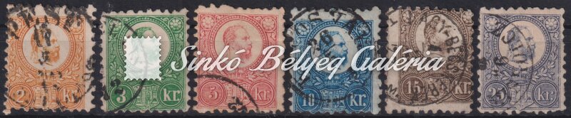 Leírás | 1871. Réznyomat teljes sor! Katalógus érték: 25.000 HUF / 1871. Engraved complete set! Catalogue value: 25.000 HUF |