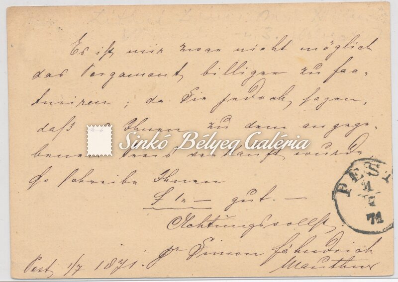 1871.07.01. Távolsági levél PEST-NEUSATZ