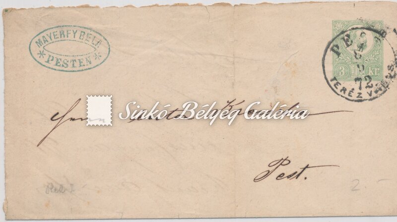 Description | 1872.09.08. Helyi levél PESTen 3kr I. típusú könyvnyomású borítékon. Katalógus érték: 75.000 HUF / 1872.09.08. Local letter in PEST on a 3kr type I. typography envelope. Catalogue value: 75.000 HUF |