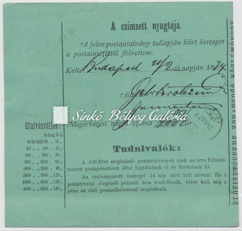 1874.02.07. Postai-utalvány 5kr MORICZFÖLD-PEST