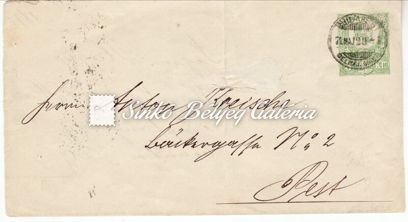 Description | 1874.05.28. Helyi levél könyvnyomású 3kr boríték, II. típusú, PEST DÉLKEL. VASP. bélyegzővel. 50Gp / 1874.05.28. Local letter, 3kr typography type II. envelope with PEST DELKEL. VASP. Cancellation. 50Gp |