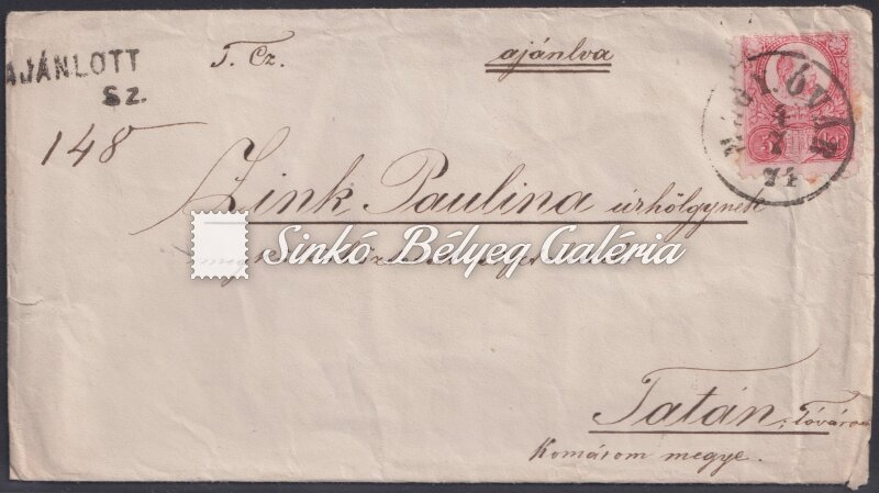 1874.07.04. Ajánlott távolsági levél MAGYARÓVÁR-TATA
