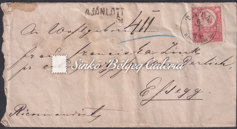 1874.07.06. Ajánlott távolsági levél TATA-ESSEGG