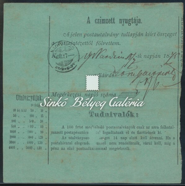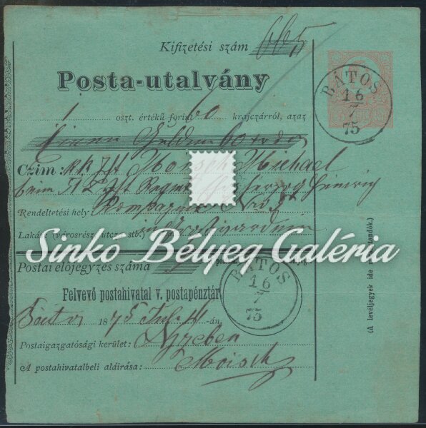 1875.07.16. Posta-utalvány BÁTOS-NAGYVÁRAD