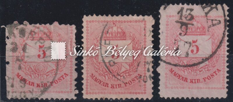 Leírás | 1874. Színesszámú krajcáros 5kr II. típusú bélyegek 13-as fogazattal, alacsonyra és magasra fogazva! / 1874. Colour number krajcar 5kr type II. stamps with 13 perforation, perforated to lower and higher! |