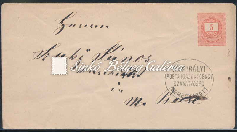 1874. 5kr díjjegyes boríték TEMESVÁR