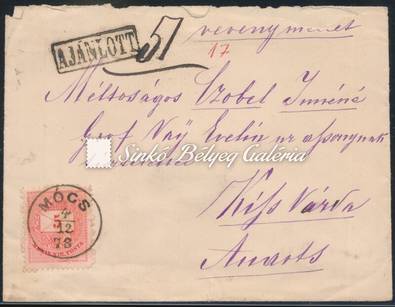 1878.12.04. Ajánlott távolsági levél MÓCS-KISVÁRDA